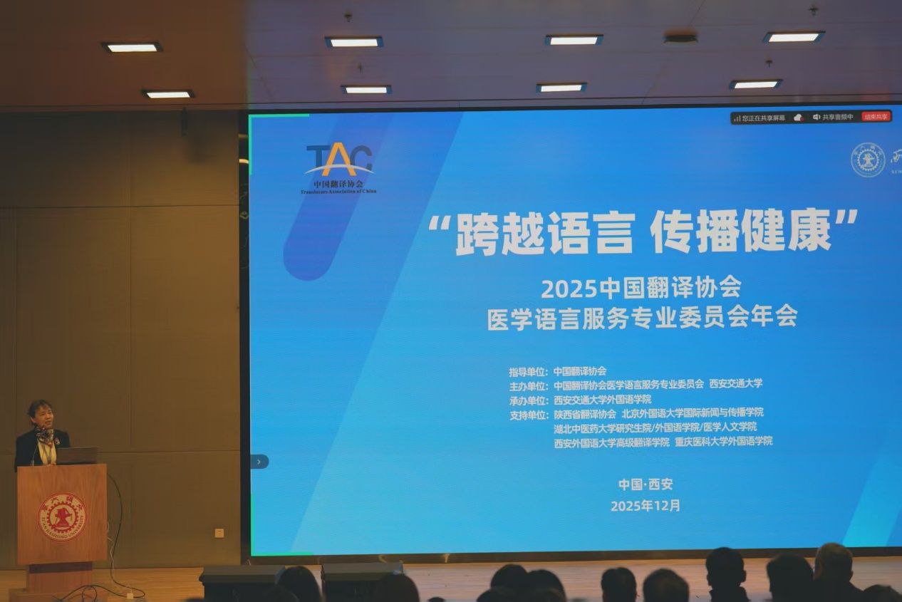 (通讯员:亢淑琴)12月6日,bwin必赢中国官网翻译硕士教育中心主任周正履带领六名英语笔译方向研究生,赴西安交通大学创新港校区参加“跨越语言,传播健康”2025中国翻译协会医学语言服务专业委员会年会。本次年会由中国翻译协会医学语言服务专业委员会与西安交通大学联合主办,吸引了来自全国高校、医疗机构、语言服务企业的专家学者与师生代表共同参与。