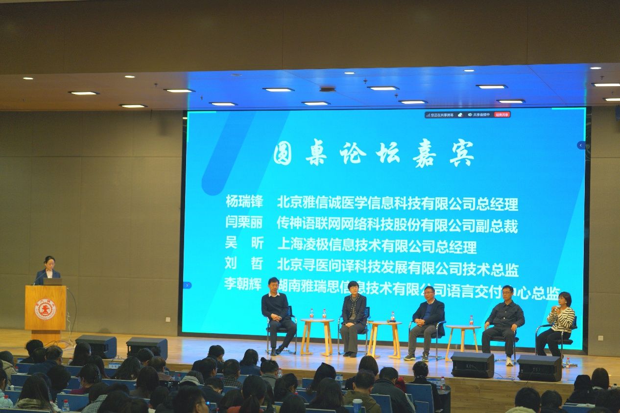 在圆桌论坛环节,来自医学语言服务企业的代表围绕“智语医言:语言服务与国际传播”展开对话,探讨了技术在医学翻译中的应用、行业人才培养与校企协同等现实问题。会议还举行了第七届“时珍杯”全国中医药翻译大赛颁奖仪式,展示了我国中医药翻译与传播的新生力量。