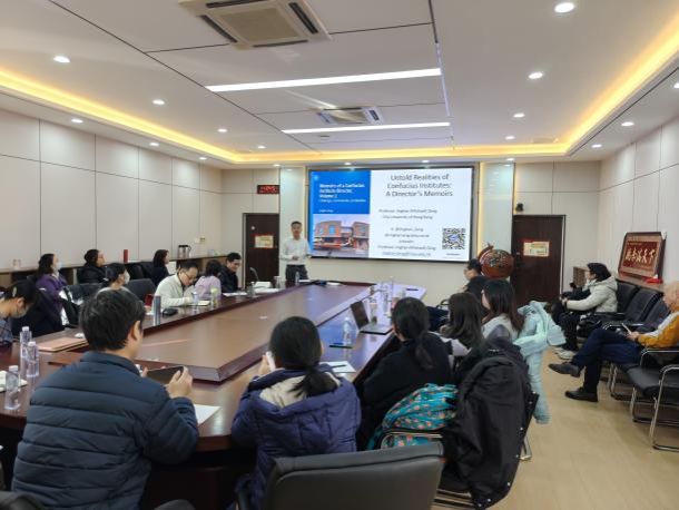 曾敬涵教授以“国际中文教育在海外的发展:以英国为例”为主题,结合其出版的《孔子学院院长回忆录》,从外方院长第一视角,生动分享了孔子学院在国际化办学中的实践与挑战。在讲座中,曾教授举例说明了区域国别研究对国际传播工作的重要作用。他还介绍了“战略叙事”概念,并强调,在当前复杂国际舆论环境中,深入分析不同行为体如何通过特定话语构建叙事、塑造认知,已成为理解国际动态与开展跨文化交流的关键。
