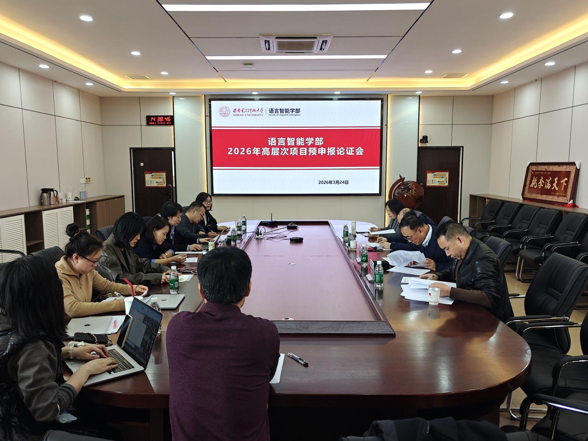 (通讯员:郭庆)为进一步提升国家社科基金等高层次项目申报质量,推进有组织科研工作,3月24日下午,语言智能学部在南校区信远II区424会议室举办2026年度高层次项目预申报论证会。会议特邀请来自西安交通大学,西安外国语大学3位教授,学部王凤教授担任辅导专家,对学部拟申报教师的选题思路、论证框架等进行精准指导与打磨。