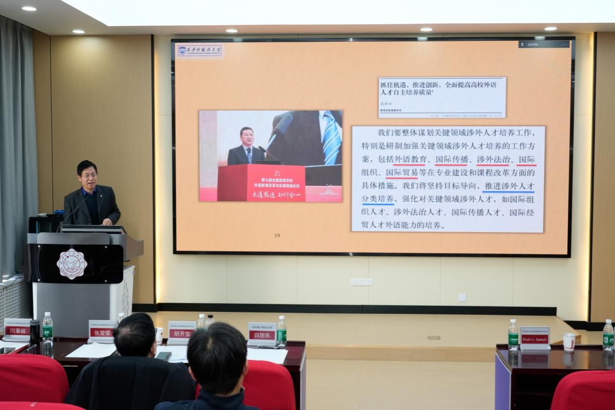 姜亚军教授作了题为《bwin必赢中国官网的转型发展与语言智能人才培养》的首场报告。他指出,外语学科改革需秉持“守正大于创新”的原则,在夯实语言基本功与人文底蕴的基础上,积极探索“外语+智能”的复合型人才培养路径,主动对接国际传播与全球治理的人才需求,推动学科实现内涵式转型与升级。