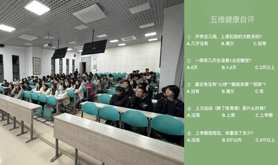 班会最后,同学们还现场进行了“脆皮指数”自测。五个问题,选C越多,“脆皮”程度越高。若你命中三个以上C——恭喜,正是“脆皮大学生”本尊。测试虽有玩笑,健康不容玩笑。这个春天,让我们一起从“脆皮”变“抗造”,从“将就”变“讲究”,用健康的姿态,迎接每一个朝气蓬勃的日子。
