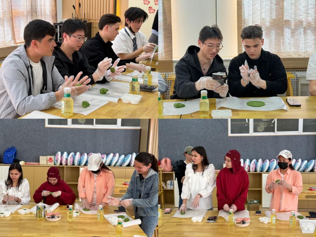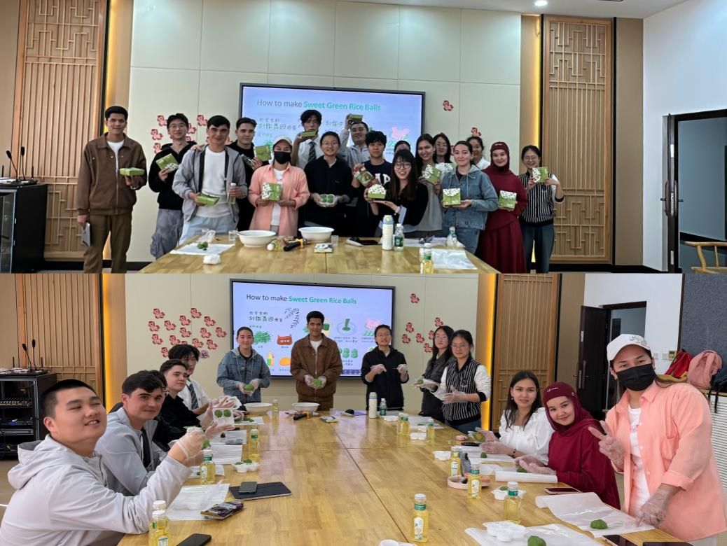 大家一起体验了青团制作。揉面、包馅、塑形,中国学生耐心指导,留学生们认真学习。将新鲜糯米粉揉成翠绿的面团,包裹上香甜的豆沙、咸香的肉松等馅料,一个个翠绿软糯的青团新鲜出炉。大家围坐分享,欢声笑语不断。这不仅是一次传统美食的制作体验,更是中外学子情感联结的美好契机,让大家在动手实践中拉近了距离,加深了情谊。