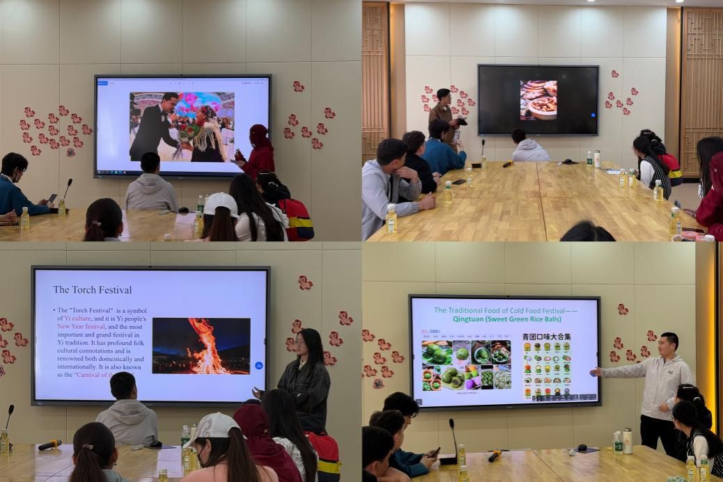 活动中,中外学生轮流分享本国传统节日与民俗文化。中国学生生动介绍从春节的万家灯火、贴春联、守岁团圆,到寒食节的禁火祭祖、食青团的传统习俗,每一个故事都承载着中国人的家国情怀与文化根脉。同学们结合自身经历,讲述春节时阖家团圆的温馨瞬间,以及寒食节承载的传统礼仪与人文情感,生动的讲解让在场留学生对中国传统节日的历史内涵与民俗风情有了更直观的认知。留学生们也热情分享了各自国家的特色节日与文化,依次介绍了妇女节在本国的庆祝形式与独特意义,有的国家以文艺会演致敬女性力量,有的以公益活动传递对女性的尊重与关怀;承载着千年历史的纳乌鲁斯节,作为许多中亚国家的新春佳节,被留学生们用欢快的歌舞、传统的庆典仪式娓娓道来,满是春日的生机与喜悦。讲不尽的节日故事,道不完的文化风情。中外学生在热烈的交流互动中,从节日习俗聊到文化传承,从生活见闻谈到情感共鸣,语言的隔阂在真诚的沟通中逐渐消散,文化的差异也在相互理解中化为包容与欣赏。