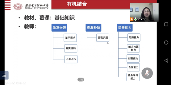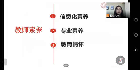 仝文宁老师的分享,既有高度,又接地气;既有对教学理念的探讨、对教育情怀的思考,又有对授课模式的解读、对教学实操的点评。她热情洋溢、生动细致的分享,使参会教师们受益匪浅。参会教师们一致认为:要不负信息化时代赋予教学的便利和机遇,勇于创新,探索更加完善的线上线下混合式教学模式。