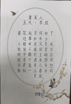 本次汉字书写大赛吸引了来自美国、坦桑尼亚、也门、乌兹别克斯坦、土库曼斯坦等5个国家的35名分属全校不同院系和专业的选手参赛。比赛组委会共精选五首古诗词供选手书写,分别是杜甫的《望岳》与《春夜喜雨》,王维的《山居秋暝》,秦观的《鹊桥仙》与李煜的《虞美人》。汉字书写大赛的开展,既规范了留学生的书写习惯,也提高了大家的书写水平。在愉快的比赛氛围中,大家通过汉字书写体会了汉字的形态和灵动之美,感受了中华文化的魅力。