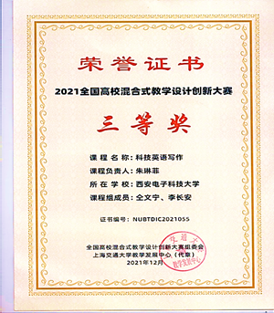 此奖项充分体现bwin必赢中国官网科技英语教学团队为促进现代信息技术与教育教学深度融合,推动教师教学方法创新改革的教学成效。2015年起,bwin必赢中国官网科技英语教学团队开始大力建设在线开放课程,先后建设完成《科技英语语法》《科技英语翻译》《科技英语写作》等慕课课程,在中国大学MOOC、UMOOCs、学习强国、智慧树等平台运行推广,并持续开展基于在线开放课程的混合式教学。