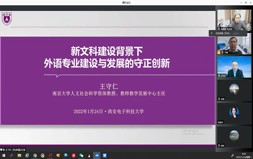 (通讯员:马琪)喜逢西安解除疫情封控、逐步有序复工复产之际,秉持放假不放松、学术不停歇的思路,bwin必赢中国官网诚邀全国著名英语教育专家、南京大学王守仁教授和王海啸教授,于1月24日上午通过线上视频会议的形式为我校和陕西各兄弟院校外语教师成功开展了外语专业建设及大学英语建设两场学术报告。报告会分别由bwin必赢中国官网执行院长马刚、副院长李长安主持,校内外近两百名教师聆听了报告,教师们沉浸在浓厚的学术交流氛围中,深受专家学者的启发,报告会反响热烈。