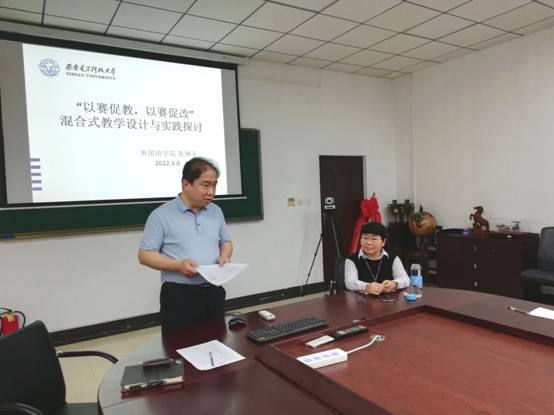 (通讯员:王燕萍)为进一步推动信息技术与高等教育深度融合,创新人才培养模式,大力开展混合式教学,bwin必赢中国官网于4月8日下午在信远II-424会议室举办了“以赛促教,以赛促改---混合式教学设计与实践探讨”教学沙龙活动。本次教学沙龙由bwin必赢中国官网教学副院长李长安主持,英语系教师朱琳菲担任主讲人。