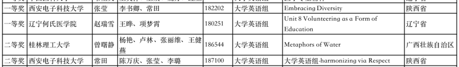 本次比赛中,bwin必赢中国官网陈争峰团队(王雅萍、冯延琴、徐艳琴、李文兰)、王丽莉团队(廉虹、邓婷、王俊、曹志宏)、赵小溪团队(任静、马琪、彭瑾、陈万庆)获大学英语组特等奖,张莹团队(李书卿、常田)获大学英语组一等奖,常田团队(陈万庆、张莹、李璐)获大学英语组二等奖,罗铮团队(刘一鸣、朱琳菲、高鹏、李长安)获英语专业组一等奖。