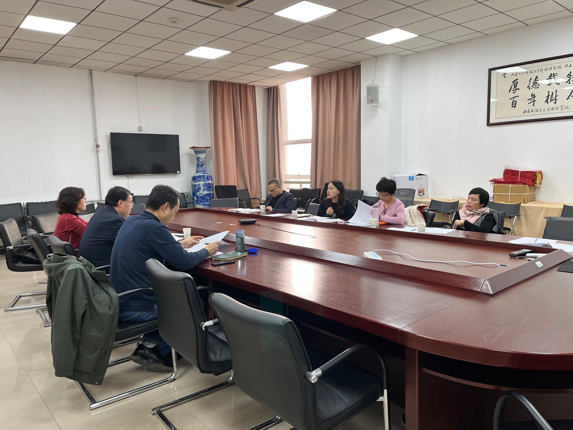 会上,各位主任首先分别汇报了2022年度科研中心工作开展情况。语言与网络空间安全前沿交叉研究中心在新文科、文工交叉融合背景下积极探索“外语+网络安全”学科、科研新方向新突破,经过近1年多的探索明确了研究方向,推进语料库建设,报送多篇研究报告,获得部级领导批示。外语教育数字化研究院顺利完成学校“慕课出海”3门课程制作任务,助推学校一流课程国际化,探索“人工智能+外语””教育教学改革,签订专著出版合同,成功举办2022(第18届)语言智能教学国际会议,并有多个项目申报与结题。“一带一路”信息通信技术传播话语研究中心在2022年陕西省第六届丝绸之路教育合作交流会开幕式上顺利揭牌,按照前期设想与规划要求顺利开展工作,在国际学术组织任职、论文发表,编著译著等方面均有突出成果,并推动我校与世界名校英国兰卡斯特大学签署联合培养翻译学双硕士学位项目协议。外国文学文化创新研究中心多次开展师生交流和学术沙龙活动,邀请国内外语界大咖为学院师生做学术报告,积极组织申报高层次项目,发表多篇高水平论文。