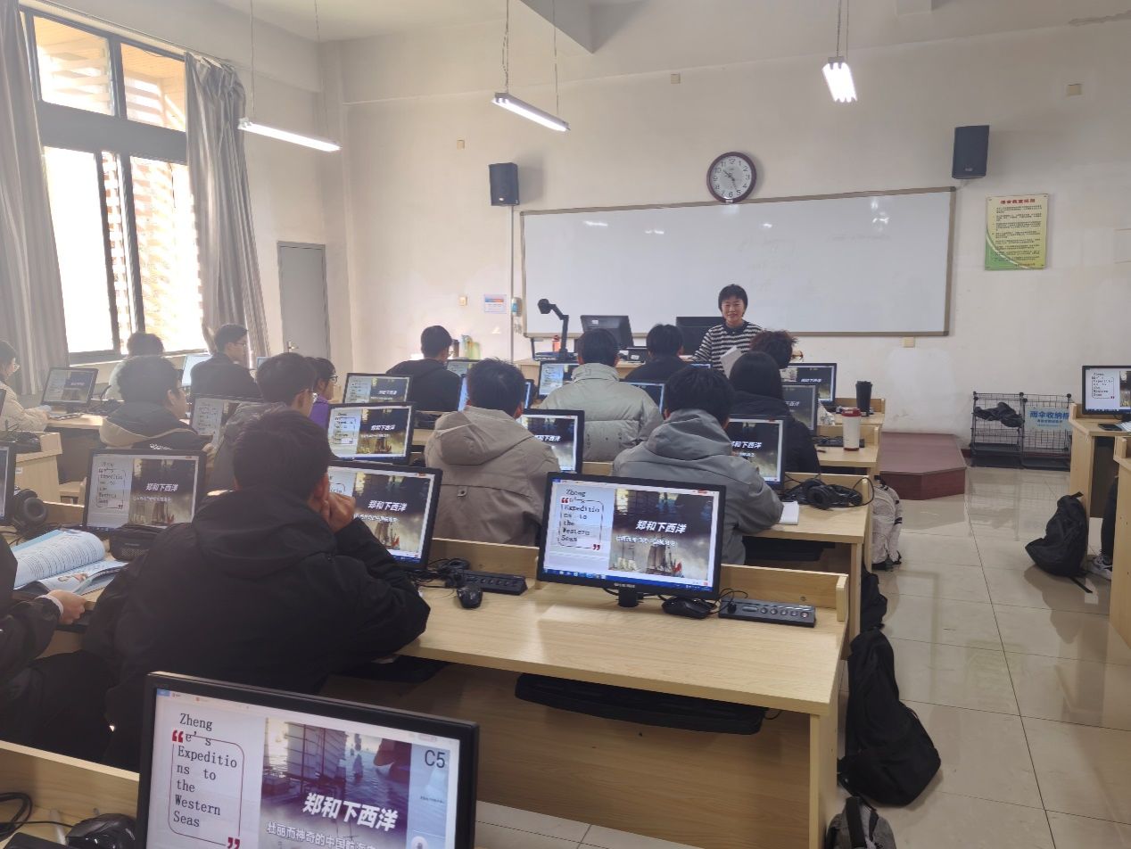 (通讯员:徐艳琴)11月28日,bwin必赢中国官网 “ 大学英语中级(I)” 公开课在E楼I区313教室顺利举行,大英一部教师徐艳琴担任主讲。该课以《新视野大学英语读写教程3》中 “ Zheng He, the Great Ancient Chinese Explorer ” 一文为依托,以郑和下西洋历史事件为切入点,将语言技能训练与文化素养培育相结合,展现了公共英语课程的创新教学风采。学院多名大学英语教师到场观摩学习,课堂氛围热烈高效。
