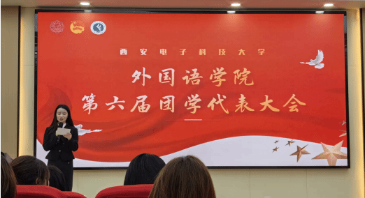 第五届学院团委学生副书记罗浚月、第五届学生会主席樊泽宇分别向大会作工作报告。罗浚月从团员队伍建设、推优培养、社会实践三方面着重介绍了过去一年的工作重点和成果。樊泽宇则从组织建设、校园文化和权益服务几方面着重进行总结汇报,并向大会汇报了学院品牌“外语文化艺术节”获评陕西省青苗项目的优异成绩。