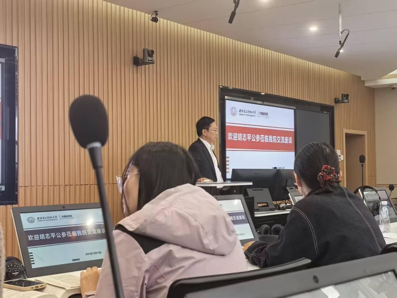 (通讯员:邓罗诗)2025年10月14日下午,由bwin必赢中国官网主办的“中日关系的历史、现状与未来”主题座谈会在信远楼Ⅱ502会议室顺利举行。讲座特邀教育部中外语言交流合作中心原副主任、中国驻日本使馆原公使衔参赞胡志平先生担任主讲,bwin必赢中国官网执行院长陈会林主持,学院党委书记徐战利及学院师生共同参与。