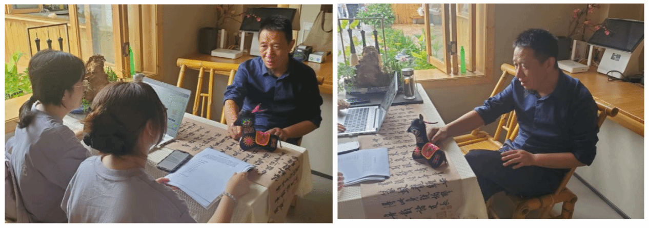 学生代表还访谈了蔡家坡关中艺术合作社的馆长。馆长详细介绍了剪纸、版画以及老人们手工编织的布艺玩偶等代表性非遗项目。他指出,尽管非遗技艺的直接传承仍面临年轻人参与不足的挑战,但越来越多返乡青年正通过创业创新,将非遗元素融入产品设计与品牌传播,并借助数字媒体扩大影响,有效实现了非遗文化的活态传承与现代转型。