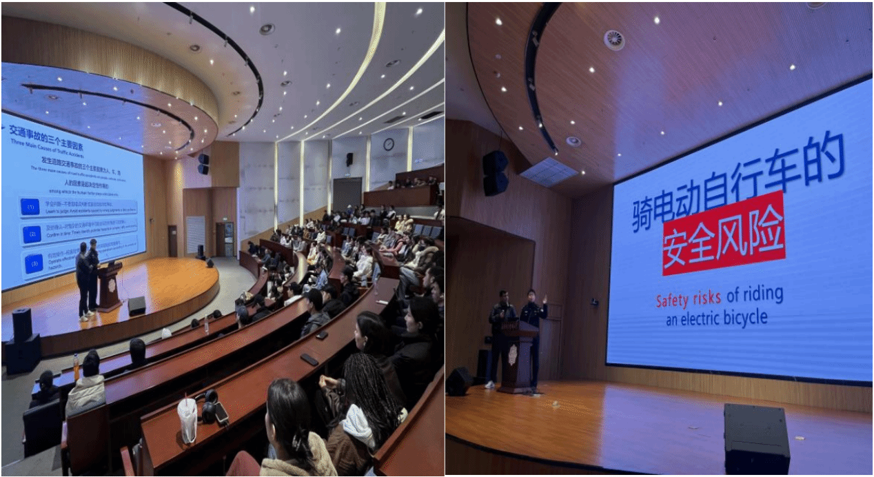 交警大队张轲鉴警官结合真实案例与交通法规,详细讲解了中国的交通规则与出行注意事项,提醒留学生在日常交通中自觉遵守规则,保障个人出行安全。
