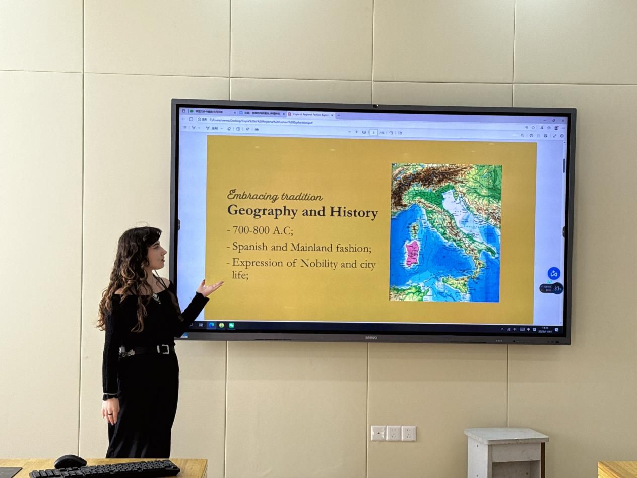 展示环节结束后,自由讨论环节迅速升温。同学们围绕“民族服饰与地域环境的关联”“各国服饰礼仪的差异”等话题展开热烈探讨。意大利传统服饰的刺绣工艺与中国苏绣有何共通之处?汉服的形制传承与土库曼民族服饰的工艺延续有哪些不同思路?大家踊跃发言,中外语言交替,在思想的碰撞中加深了对不同民族文化的理解,现场不时响起阵阵掌声与欢声笑语。