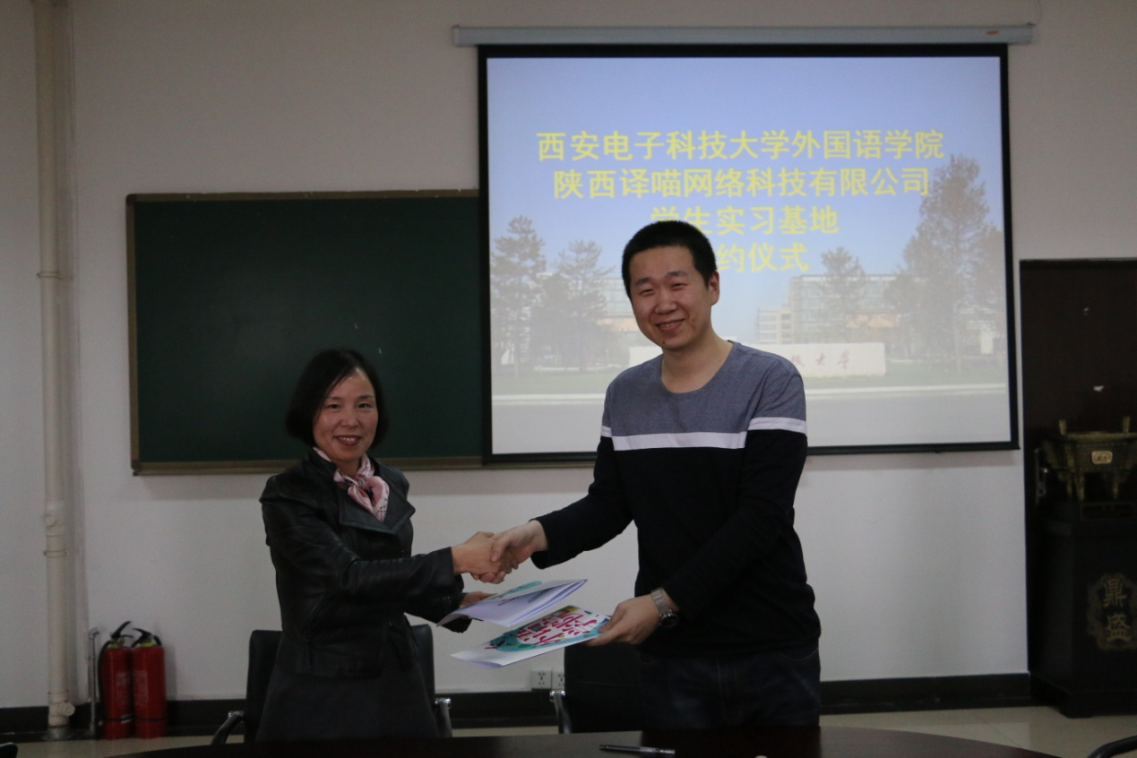 仪式上,王凤院长表达了对陕西译喵网络科技有限公司总经理王潇轩先生一行的热烈欢迎。王凤简要介绍了学院近年来改革发展取得的成绩以及人才培养质量的有关情况。她表示,实习基地是学校教育平台之外的一种有益补充,有助于学校培养出更多符合市场需求的翻译人才;同时,她希望通过与陕西译喵网络科技有限公司的合作,也把更多翻译市场的前沿资讯带给学院专业教师,开拓研究视野、改进教学模式,从而不断提高人才培养质量。
