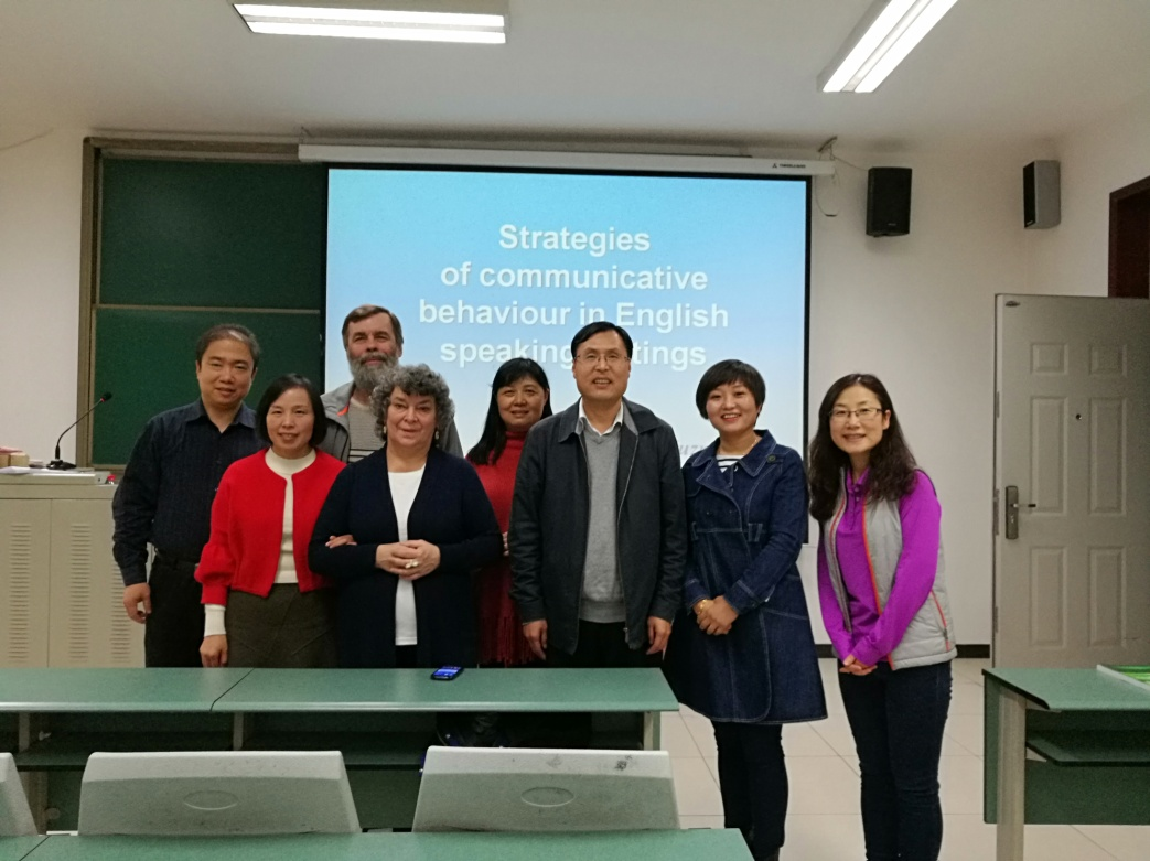 (通讯员赵丹红李长安)应bwin必赢中国官网邀请,2017年10月20日下午,俄罗斯英语教育专家Julia Kuzmenkova教授在北校区西大楼320教室以“英语会话中的交际行为策略”为主题,向我院全体英语教师及研究生做学术报告。报告会由院长王凤教授主持,副院长马刚教授、院长助理王燕萍、曹志宏等到场参加。