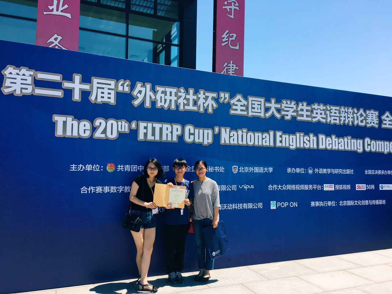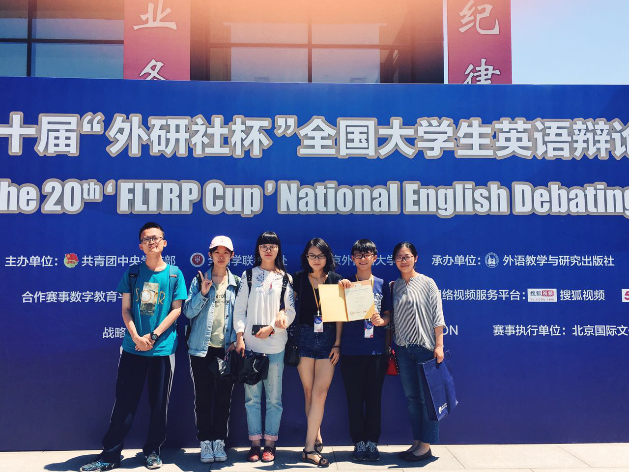 “外研社杯”全国英语辩论赛创办于1997年,是由外语教学与研究出版社主办,国际英语口语联盟和中国英语教学研究会合办的全国性比赛项目,其赛事规模盛大、参赛选手优秀、赛程及评分标准与国际惯例接轨、评委组成权威,是中国最高水平的英语辩论赛之一。本届辩论赛从2016年10月启动校园选拔赛,到今年3-5月的东、西、南、北四大赛区地区复赛,最终有120所高校进入全国总决赛。最终,我校选手在120支队伍中,以第30名的好成绩成功晋级,获得了二等奖的好成绩。
