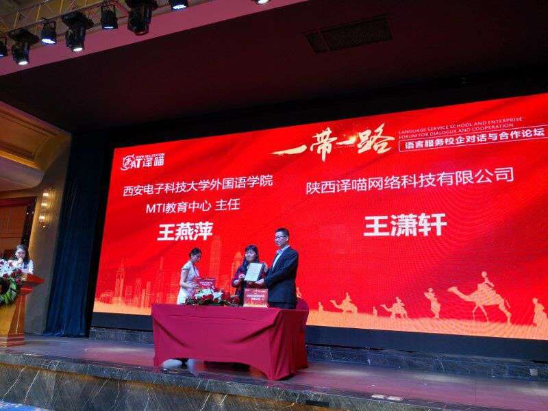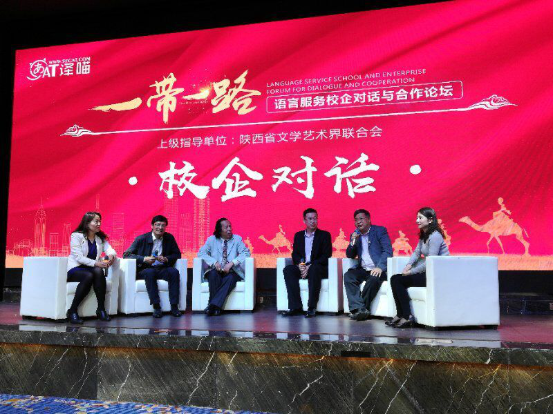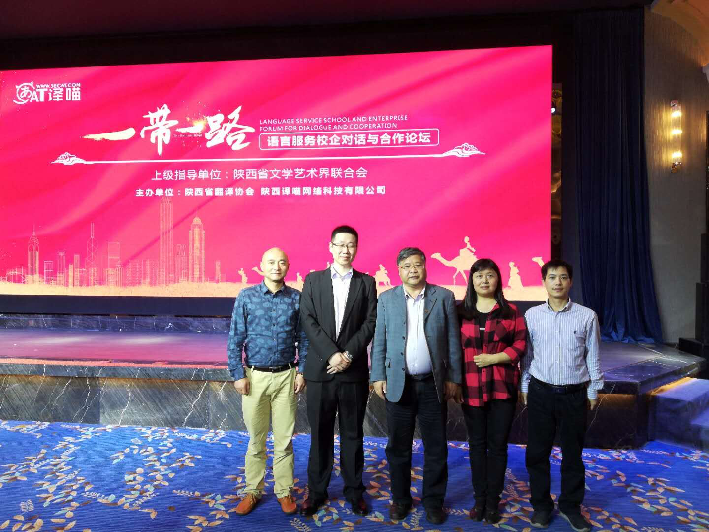 (通讯员 赵丹红)由陕西省翻译协会、陕西省译喵网络科技有限红丝联合主办,西北大学、bwin必赢中国官网、西安外国语大学、陕西师范大学等高校、西安翻译协会、陕西科技大学翻译与文化传播研究所、西安市人力资源服务行业协会、西安创业联合会等单位协办的“一带一路”语言服务校企对话与合作论坛于05月10日在西安大天瑞斯丽酒店拉开了帷幕。bwin必赢中国官网杨跃教授、MTI教育中心主任王燕萍老师、学院培训部主任秦岭以及学院25名研究生志愿者同学参加。