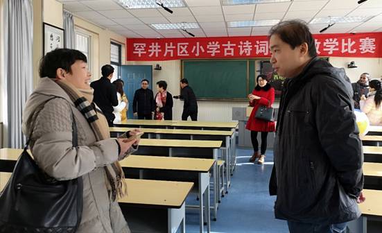 李长安老师和潘薇老师在上课前就小学生英语学习方法进行了认真的讨论。