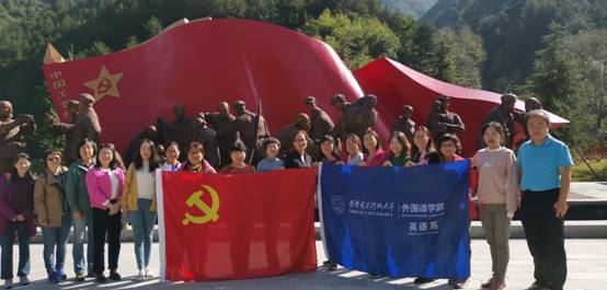 参观学习过程中,英语系党支部所有党员在党旗下庄严地重温了入党誓词,增强了对党领导中国革命取得伟大功绩的认同感,担当责任、振兴中华。