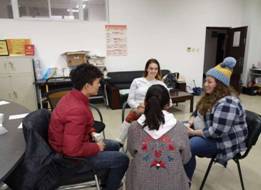 活动开始,大家逐一自我介绍、互动问答,谈论家乡、兴趣爱好。当发现有同学很紧张,陈老师风趣地说道:“咱们中国学生在面对外国人的时候,一般比较害羞。其实外国人也是如此,他们也会害羞。”在场中美大学生都会意地笑了,一名美国大学生特别提到他喜欢和中国学生交流的原因之一就是要跳出自己的“舒适圈”,克服交流中的害羞心理。