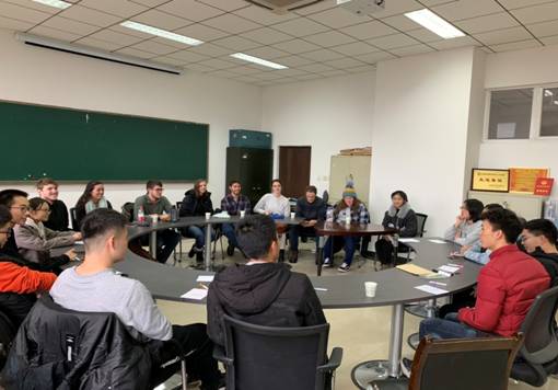 (通讯员:彭瑾)11月24日星期日下午两点,由大学英语二部主任陈万庆老师筹划开展的首期西电新校区“英语角”在南校区bwin必赢中国官网信远II区409教室举行。八位美国大学生和我校2019级大一学生参加了本次活动。此次英语角活动旨在为我校大学生搭建英语交流平台,激发学生英语学习的热情和积极性,提高跨文化交际语言综合应用能力。