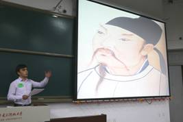中国传统文化以其独特的魅力吸引着世界各地的留学生们,他们畅游在中国文化的海洋里,与其各自国家的文化相互碰撞出不一样的火花,来自乌兹别克斯坦的留学生大海,在介绍乌兹别克风土人情之外还为大家朗诵李白的《静夜思》将本届比赛推向一个高潮。