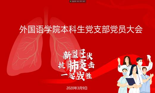 会议最后,本科生党支部书记张卫国同志进行了总结发言,要求全体党员要牢记初心使命,勇于担当,做好当下的防控疫情工作,肩负起年轻人的责任,谱写大写的青春,立鸿鹄志、做奋斗者,为建设一个强大而自信的中国而不懈拼搏。