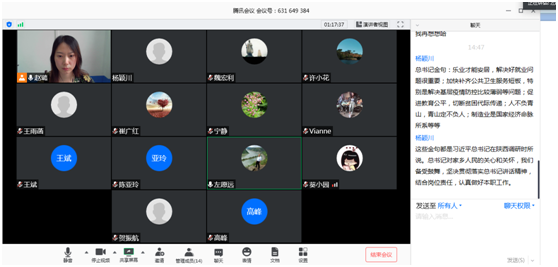 随后,大家共同学习交流了《习近平在“不忘初心、牢记使命”主题教育总结大会上的讲话》《习近平在陕西考察时强调:扎实做好“六稳”工作落实“六保”任务 奋力谱写陕西新时代追赶超越新篇章》讲话精神。之后,大家踊跃发言,畅谈感想,都表示要贯彻落实习近平总书记来陕考察重要讲话重要指示精神,提高政治站位,自觉将习近平总书记的重要讲话重要指示根植于心、外化于行、学用贯通、领会精髓要义,注重思想引领,大力弘扬延安精神、西迁精神,努力提升个人工作能力。