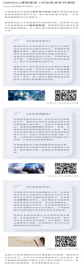 此次课程群全面上线外语学科权威平台(UMOOCs)并获大力推荐,进一步提升了我校科技英语课程在全国外语界的影响力,对我校外语学科特色成果在全国范围内的推广应用起到了积极的推动作用。