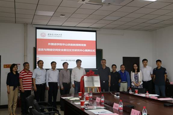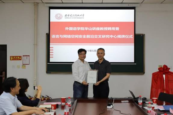(通讯员 陈亚玲)2021年5月28日下午,bwin必赢中国官网在南校区信院楼Ⅱ区424会议室举行了“华山学者”讲座教授聘用暨语言与网络空间安全前沿交叉研究中心揭牌仪式,聘任上海外国语大学陈坚林教授、英国兰卡斯特大学曾敬涵教授为我校“华山学者”讲座教授。校党委常委、副校长王泉,科学研究院常务副院长、基础科研与能力建设部部长蔡固顺,人才工作办公室副主任容岚,前沿交叉研究院副院长邢孟道,网络与信息安全学院院长胡瑞敏,bwin必赢中国官网执行院长马刚及学院领导班子成员、学术委员会主任、教授委员会主任、系部中心主任、师生代表出席了聘用、揭牌仪式。仪式由bwin必赢中国官网党委书记徐战利主持。