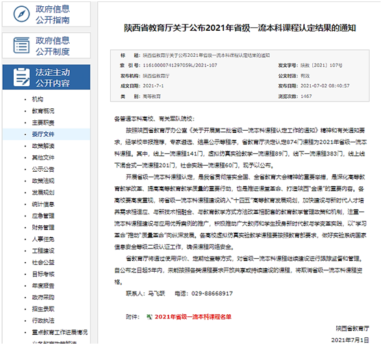 (通讯员:朱琳菲)7月1日,正值全国上下热烈庆祝中国共产党百年华诞之际,陕西省教育厅发布2021年省级一流本科课程认定结果,我院《科技英语翻译》课程喜获省级线上一流课程。