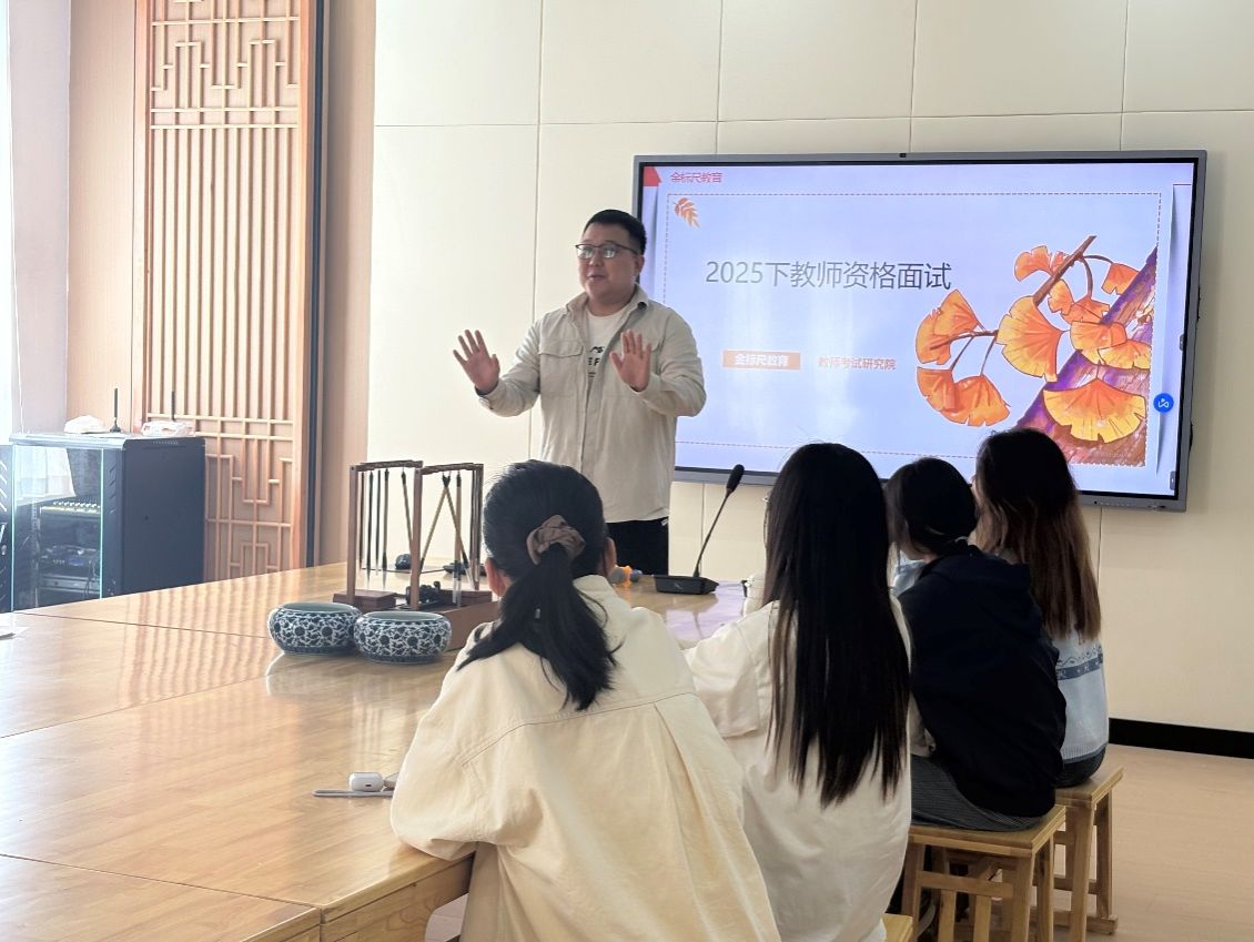 张迪老师聚焦教资面试的核心要点开展专题分享。他详细讲解了着装、问候语、站姿、眼神交流等面试礼仪的注意事项,系统梳理了“结构化问答—试讲—答辩”各个流程的考核要点和应对举措,简要介绍了应对突发情况的实用策略和方法,帮助考生提高整体表现水平。