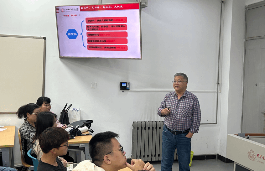 杨跃教授详细介绍了bwin必赢中国官网的起源与发展。从早年抗战时期学校的外籍教师开始,到1985成立外语系,并最终在2013年成立bwin必赢中国官网,同学们在历史的回顾中更加清楚地了解了西电语言类专业的特色和自己的学习方向。他强调,同学们一定要利用好工科学校的优势资源,打牢英语语言知识和技能;要运用好当下强大的AI技术,提升学习效率,开拓学习新途径;努力掌握科技知识、经贸知识及其它人文知识,努力向“英语+”类型的人才转变,为日后成为国家所需的新文科人才奠定扎实基础。